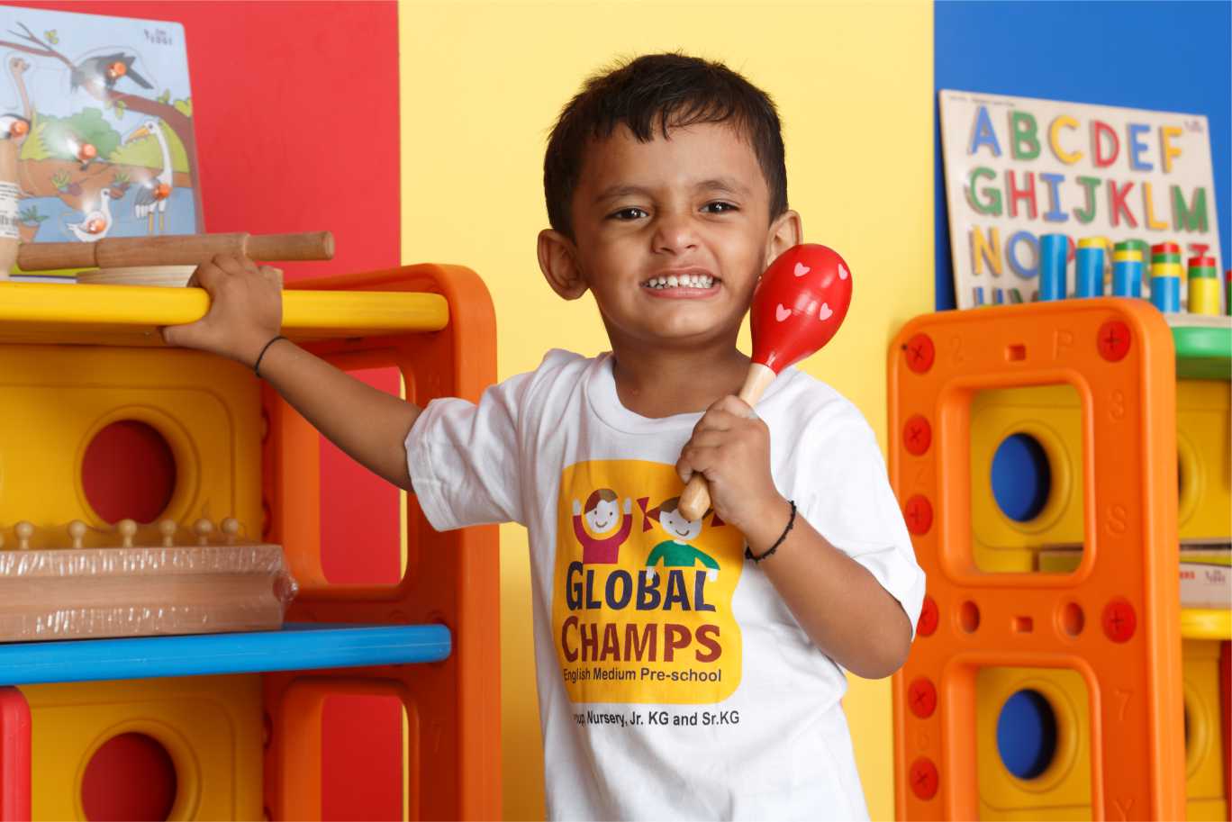 At Global Champs, we do our very best to make our preschool ‘A home learning experience’ for young kids. A place where your child feels safe and secure, where they can explore, discover and learn more about this limitless world. So while your precious child is on their quest to learning, we make sure that they get the best at every step. We believe that the foundation for a successful career is laid at an early age. Therefore we bring the best of innovative curriculum, teaching aids, and methods, presented by well-trained and experienced teachers and delivered to you at an affordable price.